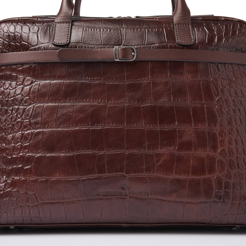 Lisa is een charmante laptoptas, ontworpen met oog voor detail en vakmanschap. Voor deze collectie ontwikkelden we samen met onze Toscaanse partner hoogwaardig stierenleer met een klassieke croco-print. Het plantaardig gelooide leer voldoet aan de richtlijnen van de Leather Working Group en staat voor een stijlvolle én duurzame keuze.