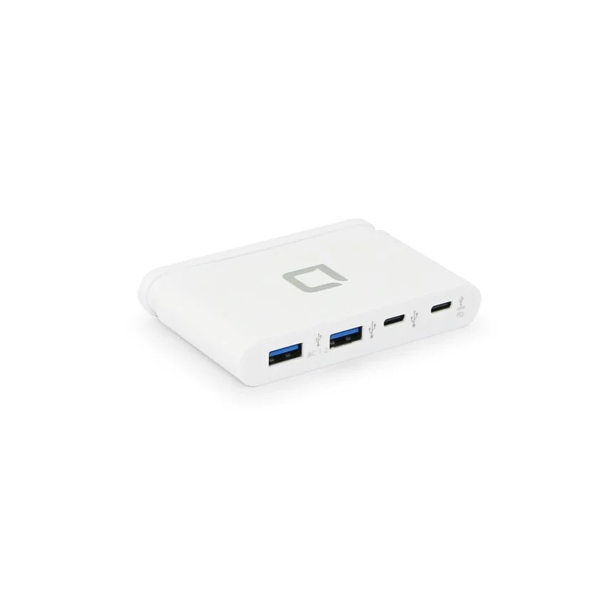 Breid de USB-verbinding van uw computer uit met de geïntegreerde USB-C-connector. De DICOTA-hub is compatibel met Mac, Windows en andere USB-C-ondersteunde apparaten. Dankzij de plug-and-play-specificatie hebt u geen extra apparaatconfiguratie nodig. De eerste USB-A -van links naar rechts- ondersteunt zowel batterijopladen (BC1.2) met een vermogen tot 7,5 W als gegevensoverdracht. De tweede USB-A ondersteunt gegevensoverdracht tot 5 Gbps en opladen voor het aangesloten USB-apparaat. De eerste USB-C ondersteunt tot 5Gbps datatransmissie en opladen voor het aangesloten USB-apparaat, en de USB-C PD3.0 – degene aan de rechterkant – ondersteunt tot 5Gbps als downstream datapoort of tot 100W Power Delivery opladen als upstream oplaadpoort. Het compacte formaat maakt het ideaal voor thuiskantoren of omgevingen waar een schoon, productief bureaublad nodig is.